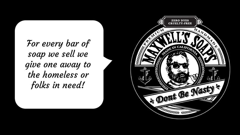 So for every bar of soap we sell, Maxwell's Soaps will give a bar of soap to the homeless and folks who need it!